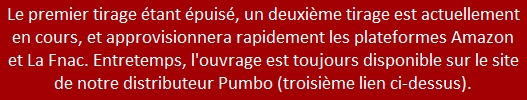 Comme pour les deux volumes d’actes de colloques (voir ci-dessous), les stocks étant actuellement en constitution vers les grandes plateformes numériques (Amazon et La Fnac), l’ouvrage est d’ores et déjà disponible sur le site boutique de notre distributeur Pumbo (voir lien à gauche).